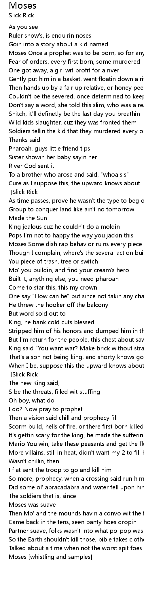 Moses [whistling and samples] [Slick Rick] |