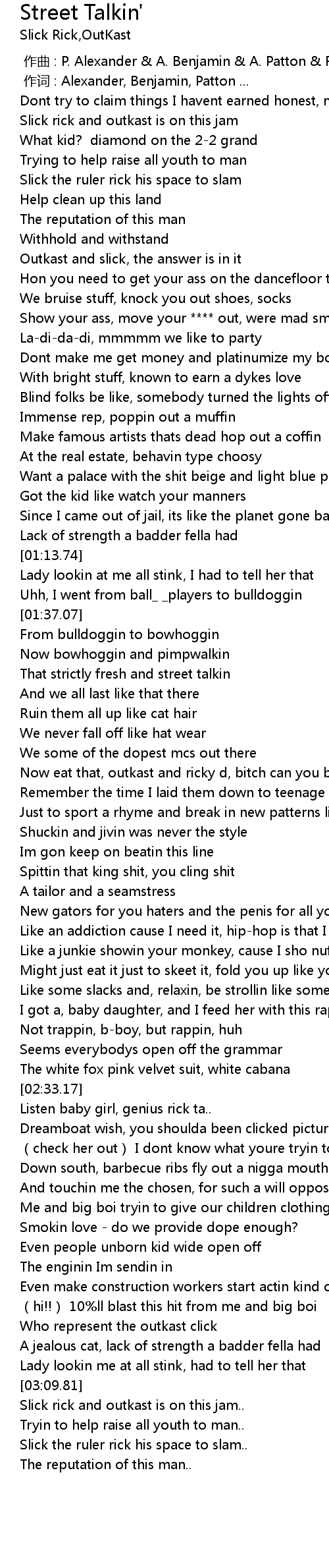| [00:22.24] | Slick rick and outkast is on this jam |
