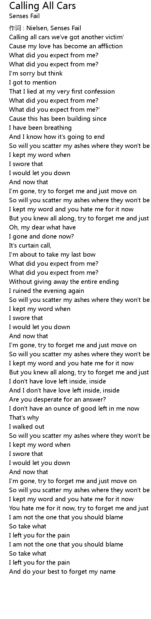 | 作词 : Nielsen, Senses Fail | |