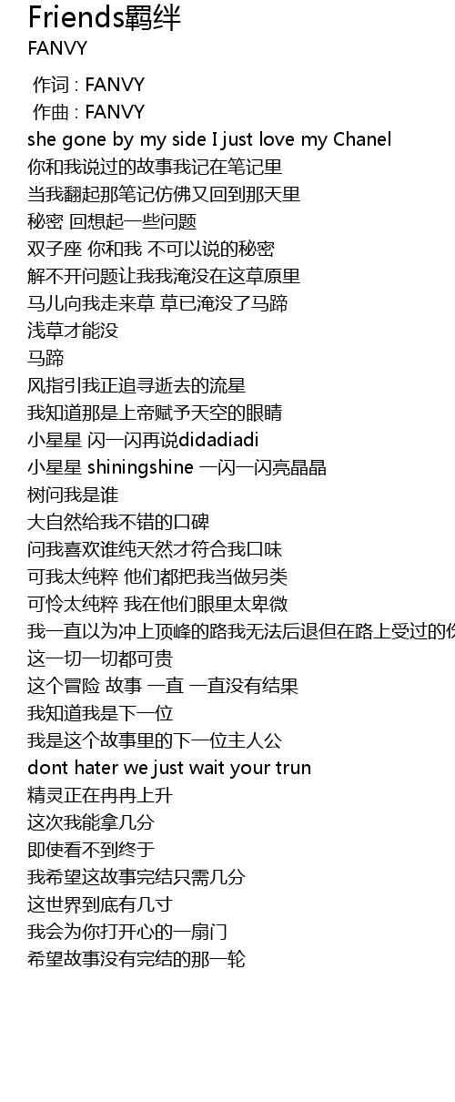 | [00:00.000] | 作词 : FANVY |