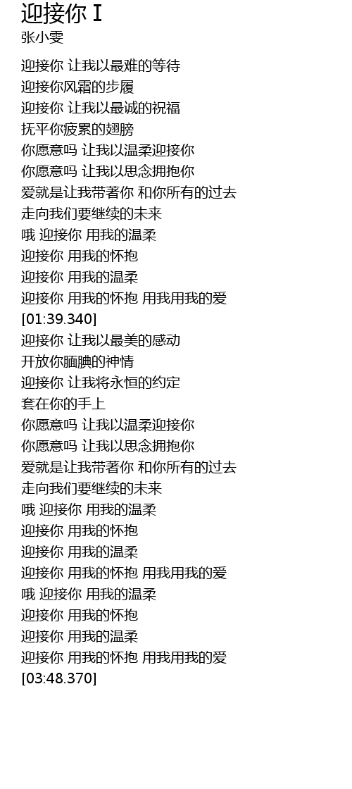 | [03:37.400] | 迎接你 用我的怀抱 用我用我的爱 |