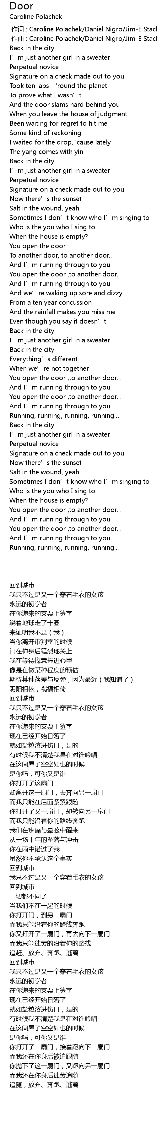 | Song | Door |