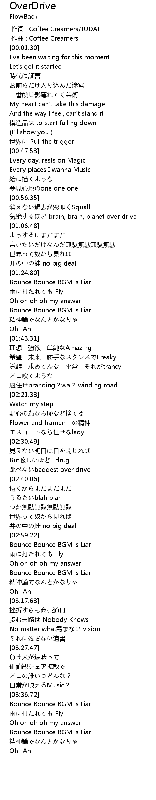 | [03:37.18] | Bounce Bounce BGM is Liar |