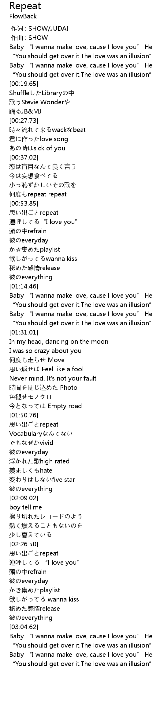 | [00:01.41] | Baby “I wanna make love, cause I love you” He said. |