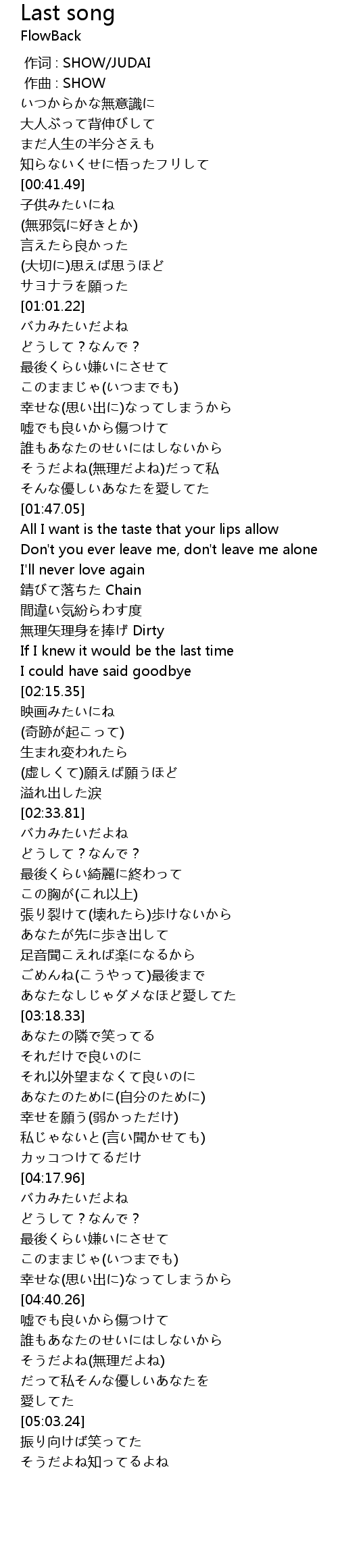 | [03:06.36] | ごめんね(こうやって)最後まで |