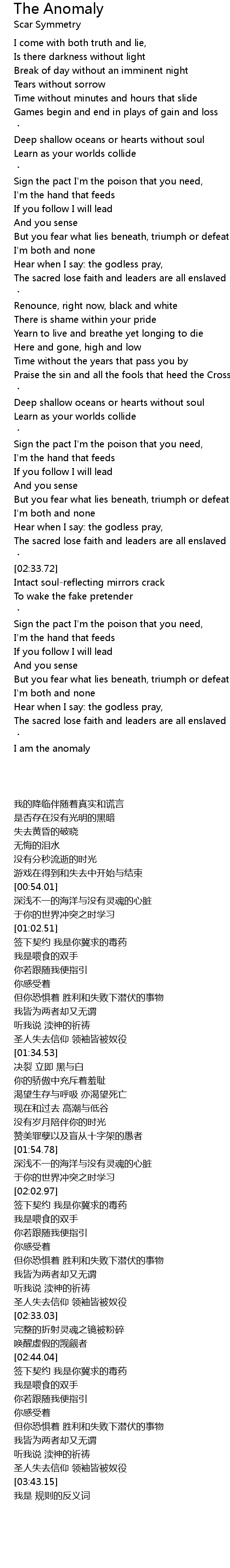 | [01:42.39] | Yearn to live and breathe yet longing to die |