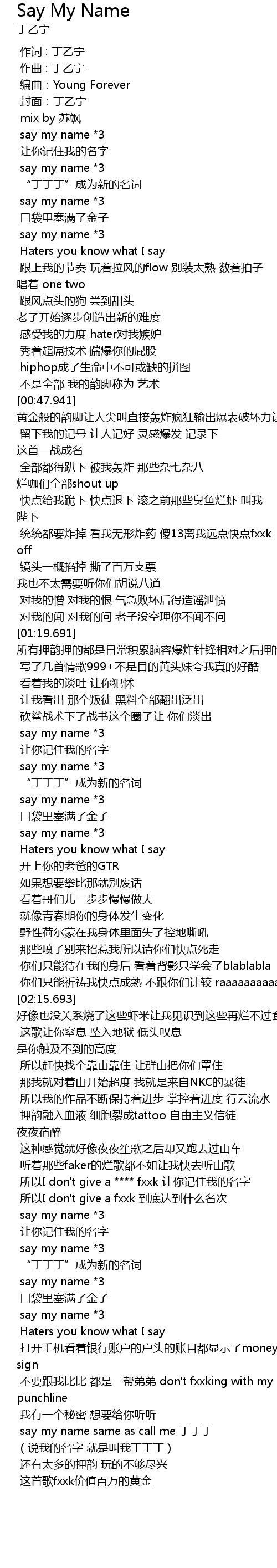 | [03:21.443] | say my name same as call me 丁丁丁 |