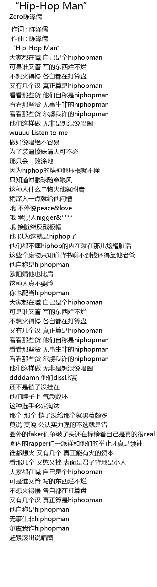 | [00:31.730] | 大家都在喊 自己是个hiphopman |