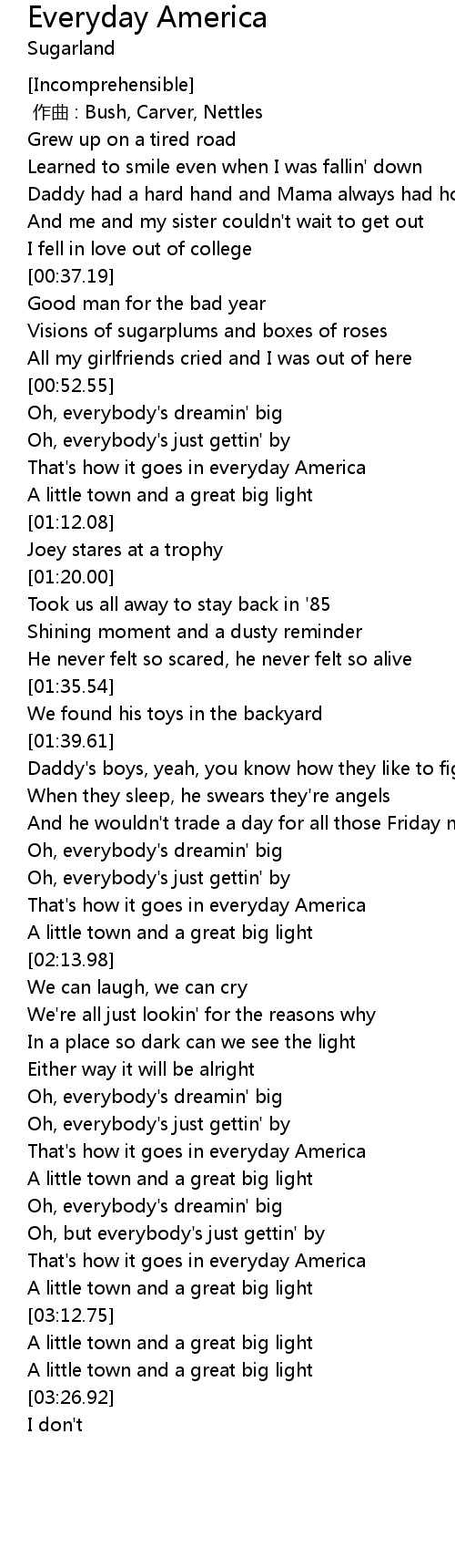 | [02:59.20] | Oh, but everybody's just gettin' by |