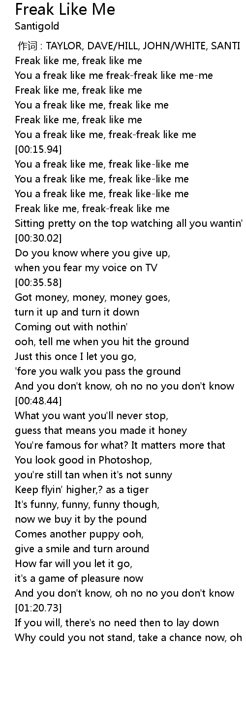 | [00:13.52] | You a freak like me, freakfreak like me |