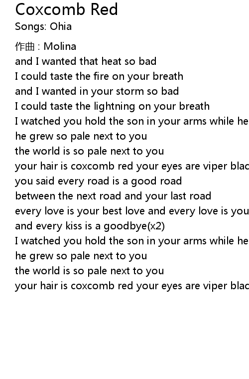 | Song | Coxcomb Red |
