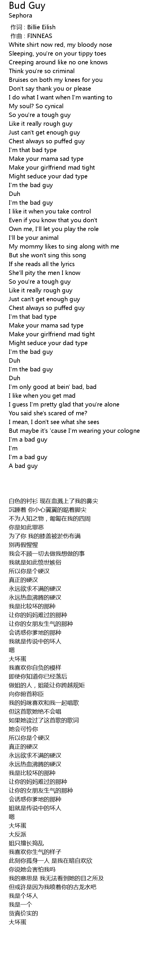 | [02:59.80] | I' m a bad guy |