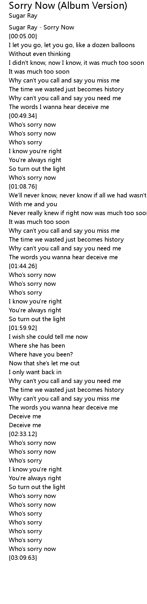 | [03:04.00] | Who's sorry now |