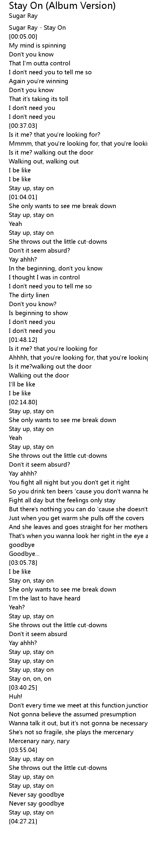 | [02:54.65] | That's when you wanna look her right in the eye and you hear her say goodbye |