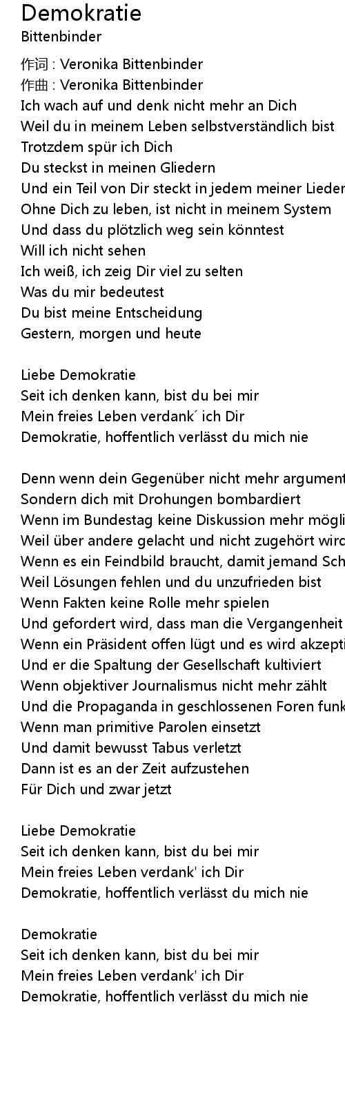 | Demokratie, hoffentlich verl sst du mich nie |