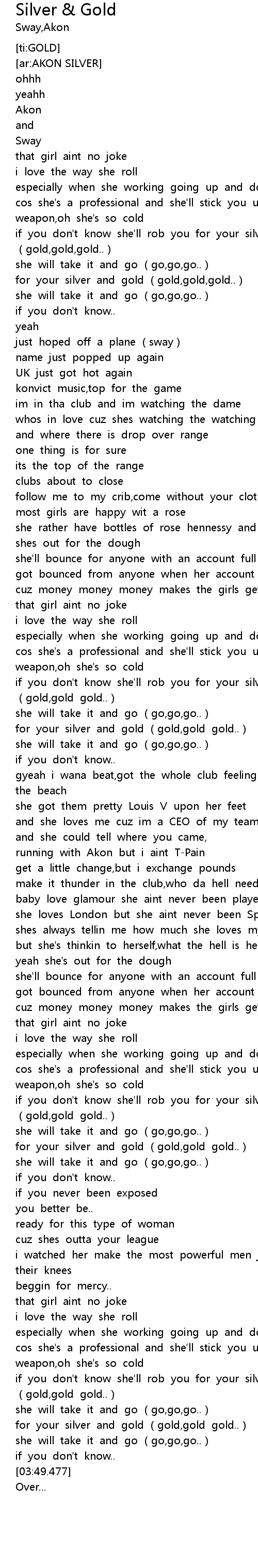 | [02:50.450] | for your silver and gold (gold,gold gold..) |