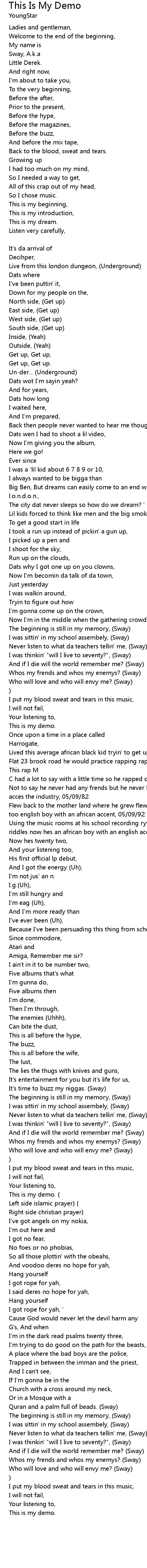 Never listen to what da teachers tellin' me, (Sway) |