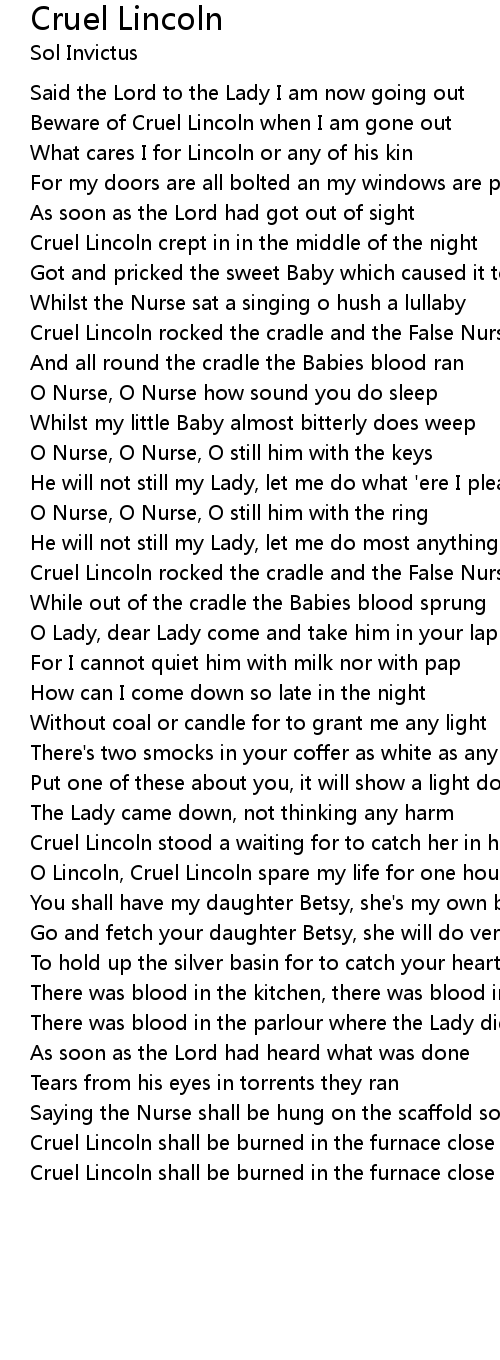 Cruel Lincoln rocked the cradle and the False Nurse she sung |