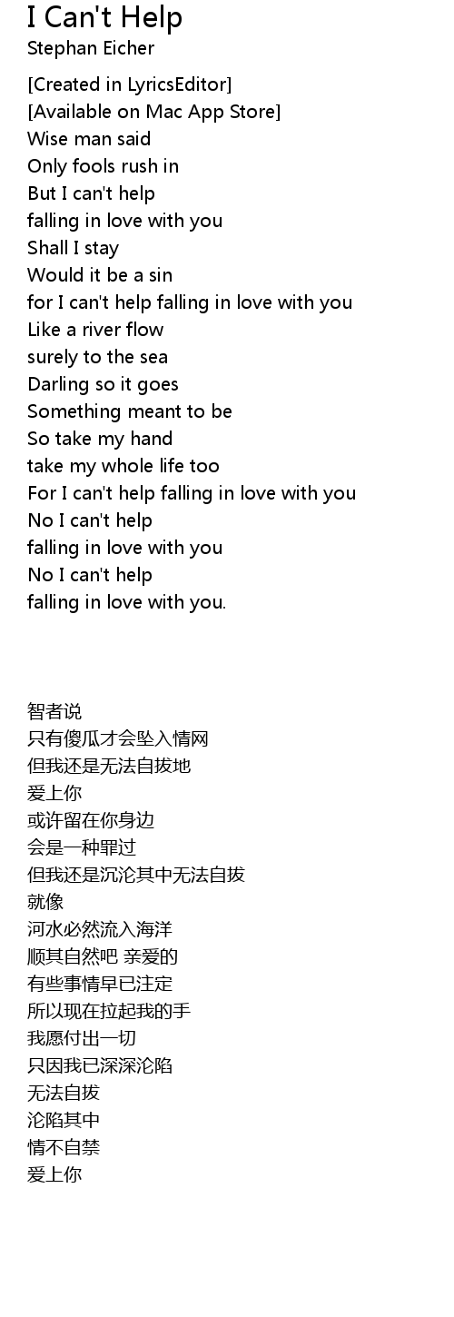 for I can't help falling in love with you |