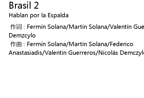 | [00:00.00-1] | 作曲 : Fermín Solana/Martín Solana/Federico Anastasiadis/Valentín Guerreros/Nicolás Demczylo |