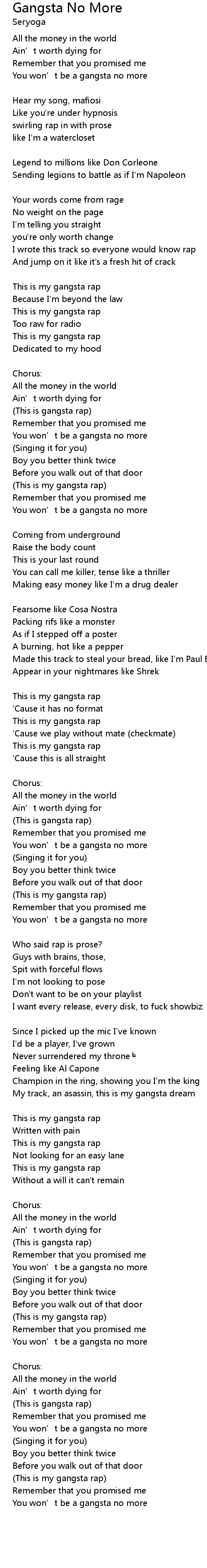| You won’t be a gangsta no more | |