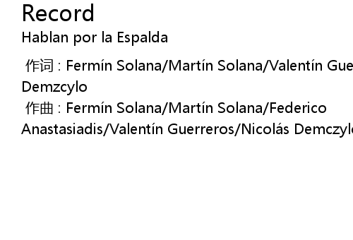| [00:00.00-1] | 作词 : Fermín Solana/Martín Solana/Valentín Guerreros/Nicolás Demzcylo |