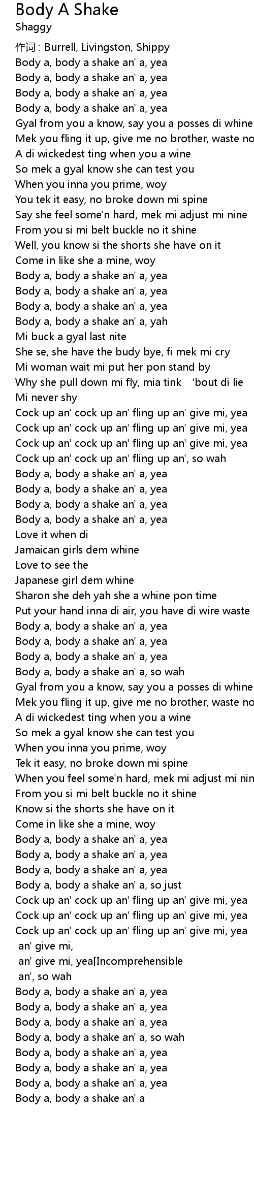 | Body a, body a shake an' a, yea | |