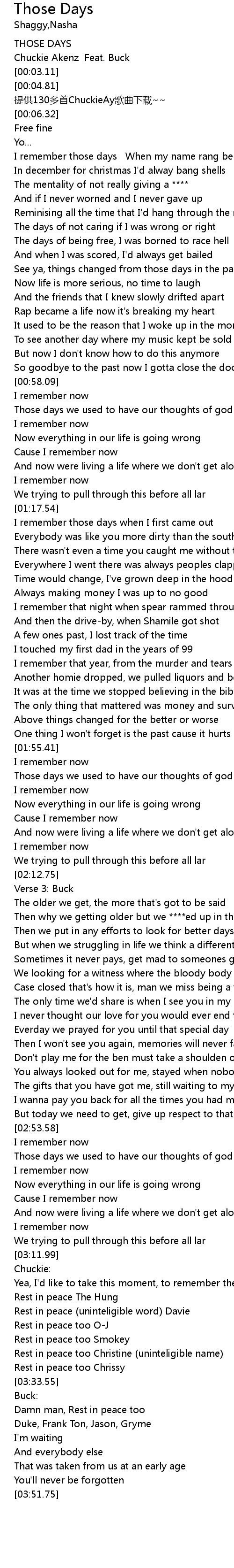 | [03:14.11] | Yea, I'd like to take this moment, to remember the forgotten |