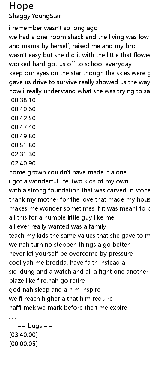 | [03:00.50][02:40.90][02:02.70][01:06.10] | it's just hope that makes me carry on |