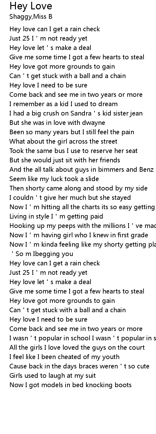 | [00:24.72] | Hey love can I get a rain check |