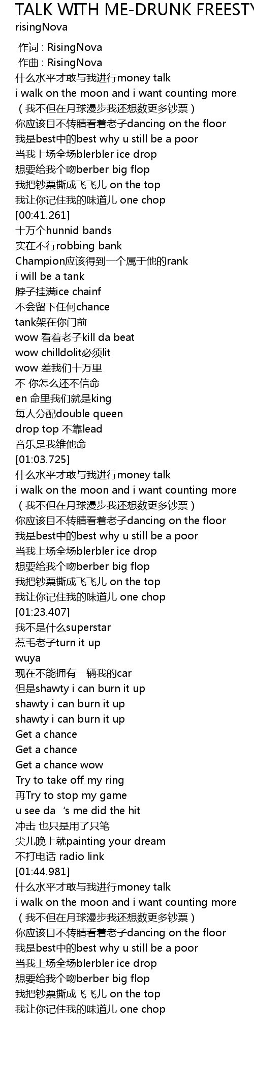 | [01:45.654] | shen me shui ping cai gan yu wo jin xing money talk |
