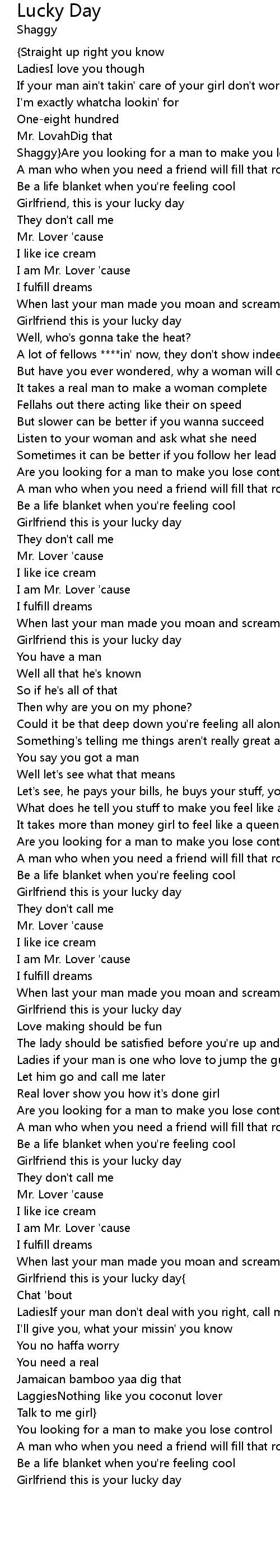 | Shaggy}Are you looking for a man to make you lose control? | |