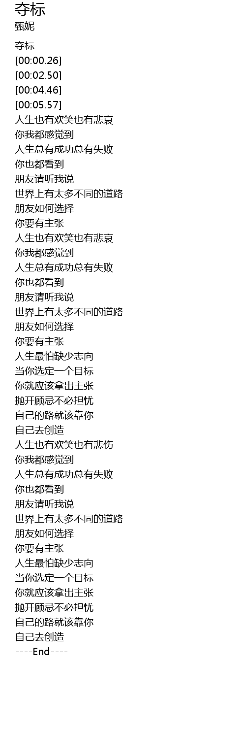 | [02:51.63] | 人生最怕缺少志向 |