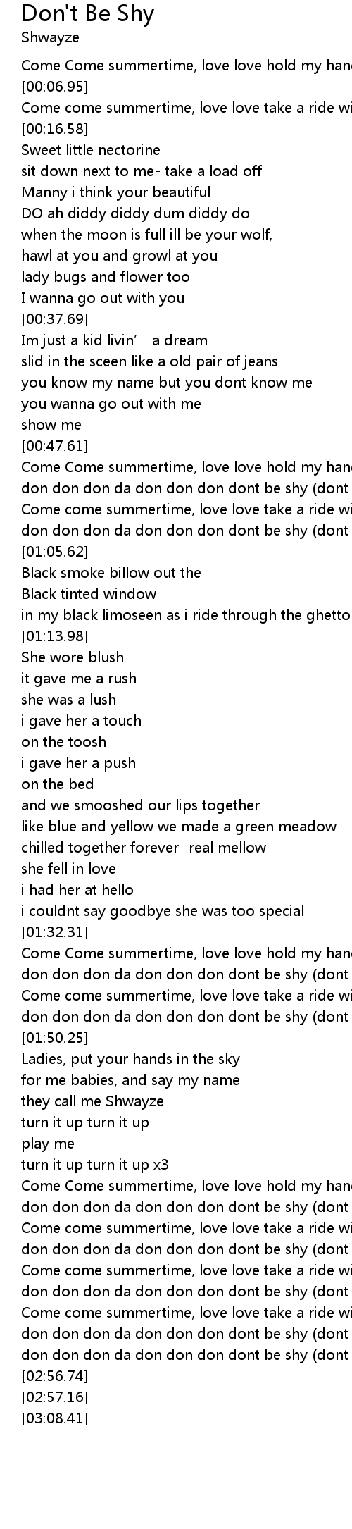 | [02:30.65] | don don don da don don don dont be shy dont be shy |