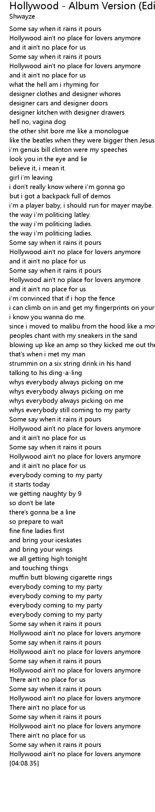 | [04:03.30] | Hollywood ain't no place for lovers anymore |