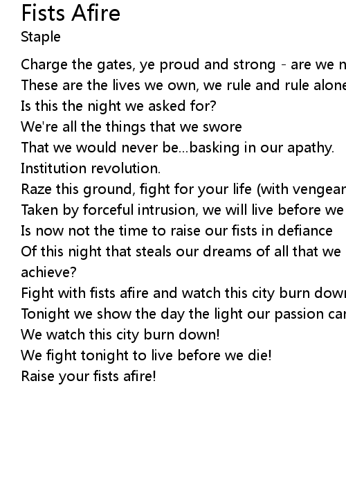| Raise your fists afire! |