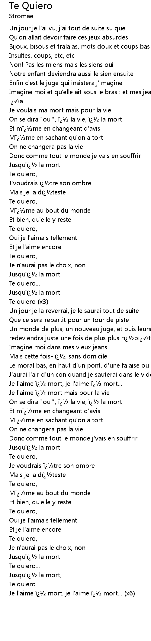 | Je l'aime � mort, je l'aime � mort... (x6) |