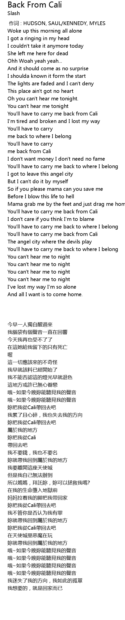 | [02:47.590] | You'll have to carry me back from Cali |