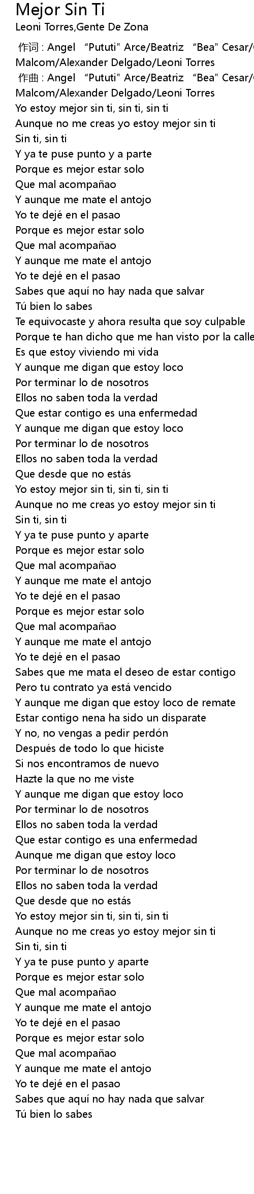 | [02:38.49] | Yo estoy mejor sin ti, sin ti, sin ti |
