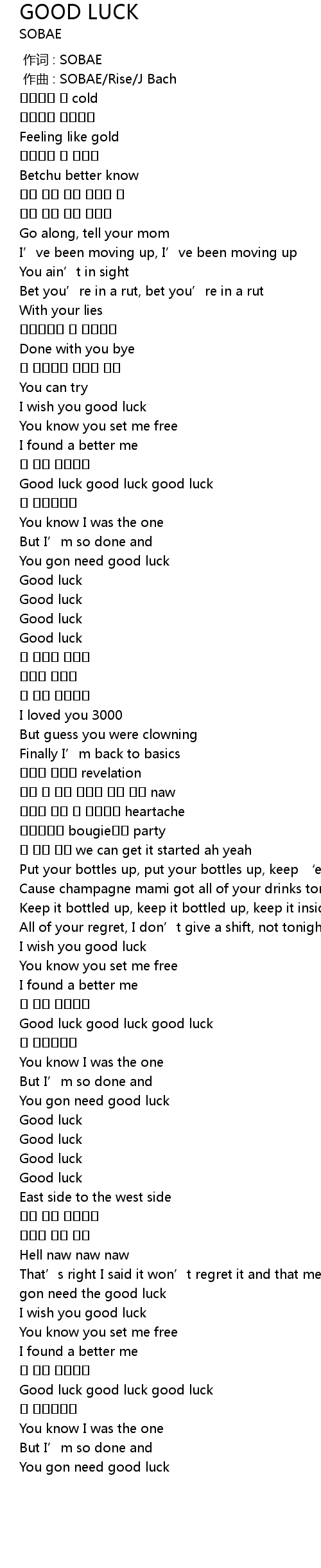 | [03:10.438] | You gon need good luck |