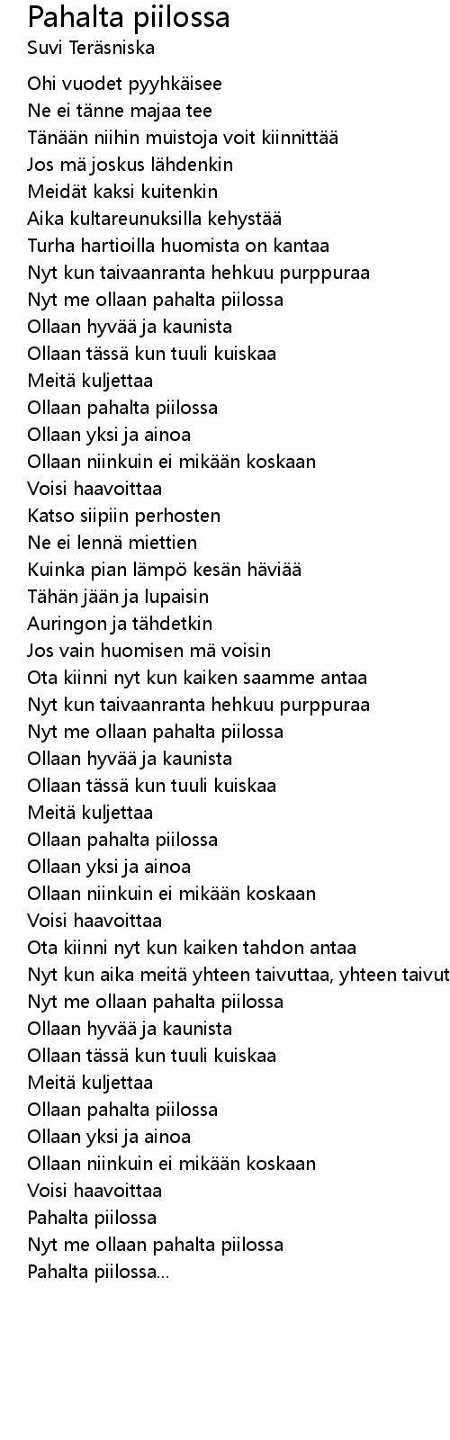 | Nyt kun aika meit yhteen taivuttaa, yhteen taivuttaa | |