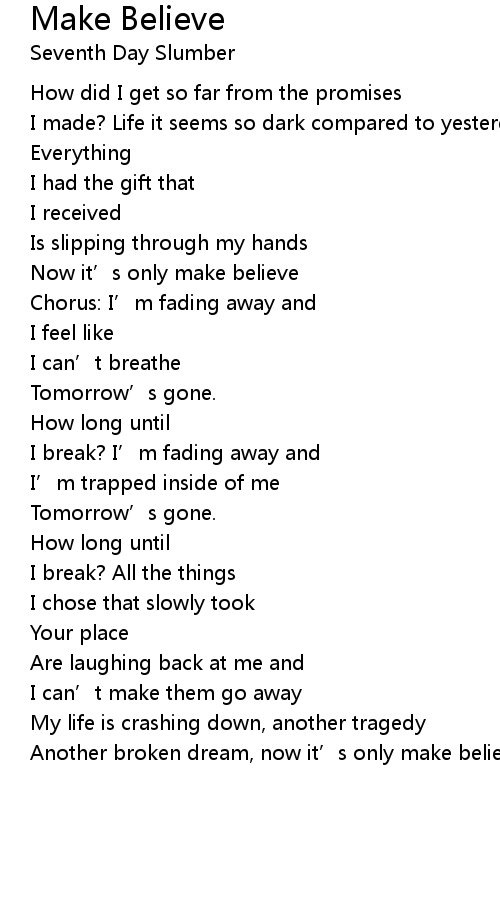 | Another broken dream, now it’s only make believe (Chorus) |