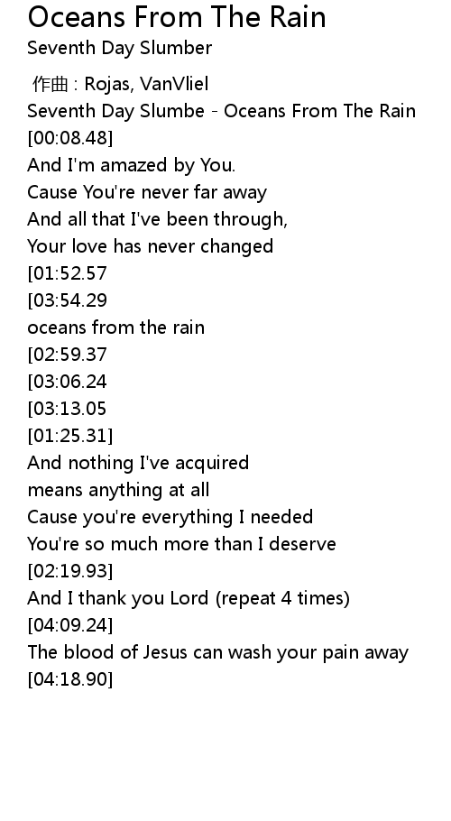 | [00:01.12] | Seventh Day Slumbe Oceans From The Rain |