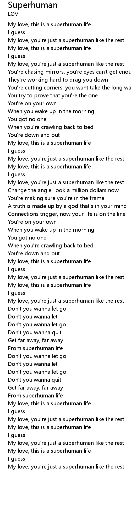 | [00:18.780] | My love, you're just a superhuman like the rest |
