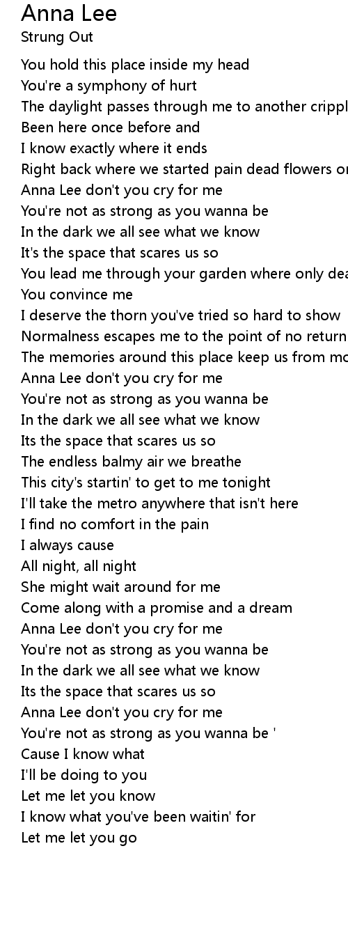Anna Lee don't you cry for me |