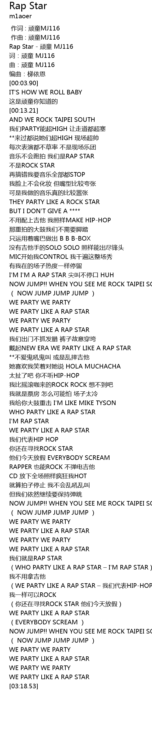 | [00:01.10] | Rap Star - 顽童 MJ116 |