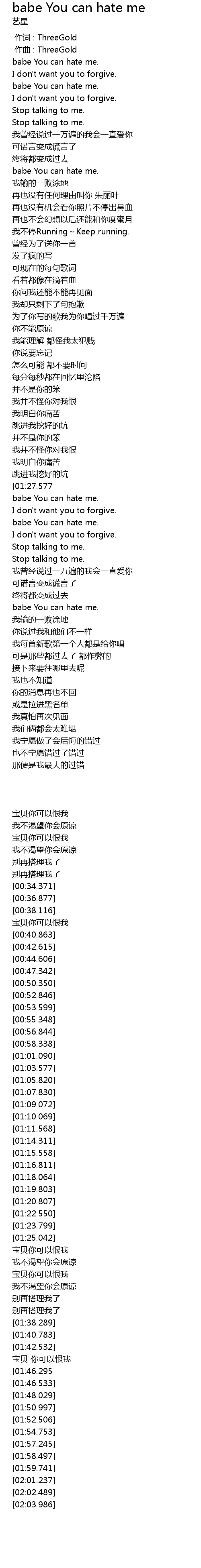 | [01:15.558] | wǒ bìng bù guài nǐ duì wǒ hèn |