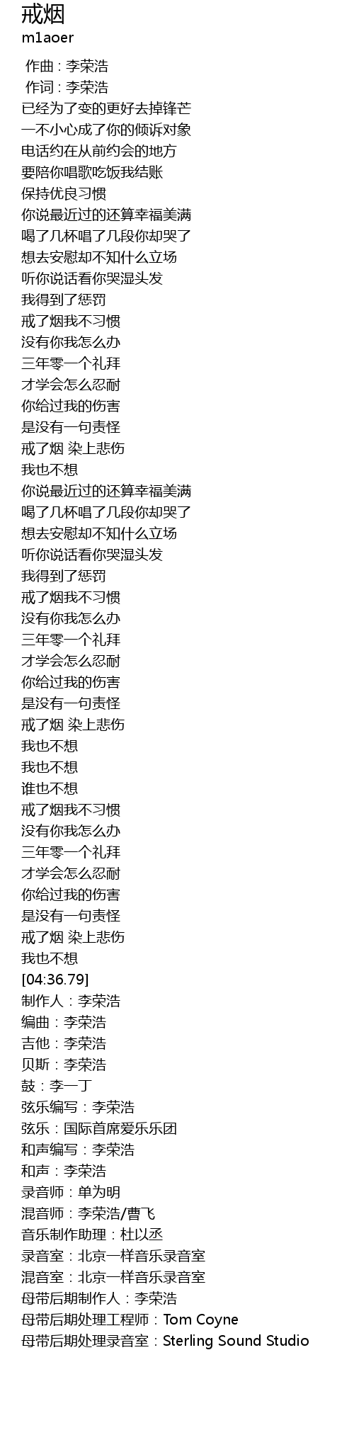 | [03:44.31] | jiè le yān wǒ bù xí guàn |