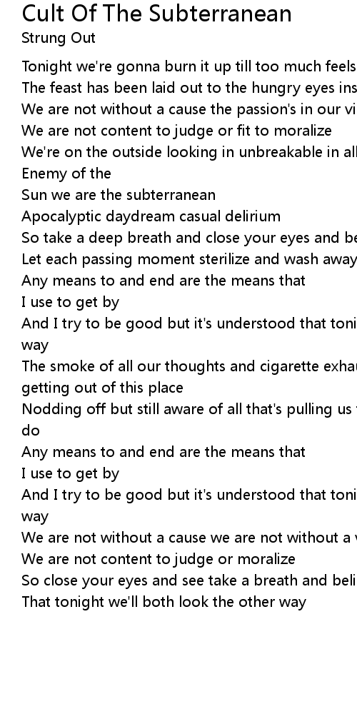 The smoke of all our thoughts and cigarette exhaust all possibility of ever getting out of this place |