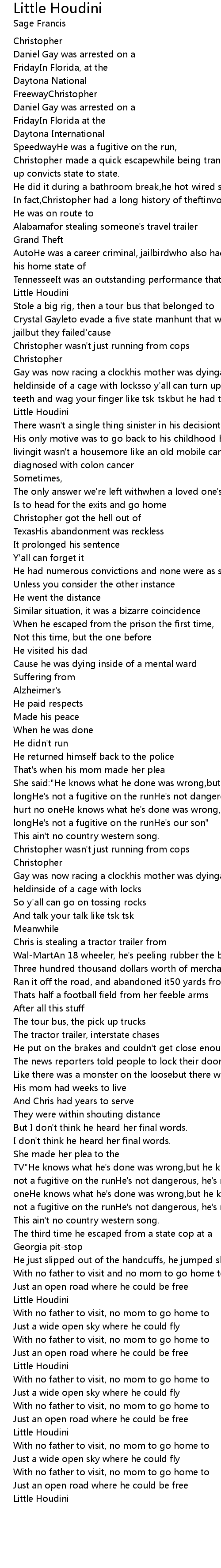 She said:"He knows what he done was wrong,but he knows his father don't got longHe's not a fugitive on the runHe's not dangerous, he's our sonhe ain't never hurt no oneHe knows what he's done was wrong,but he knows his father don't got longHe's not a fugitive on the runHe's our son" |